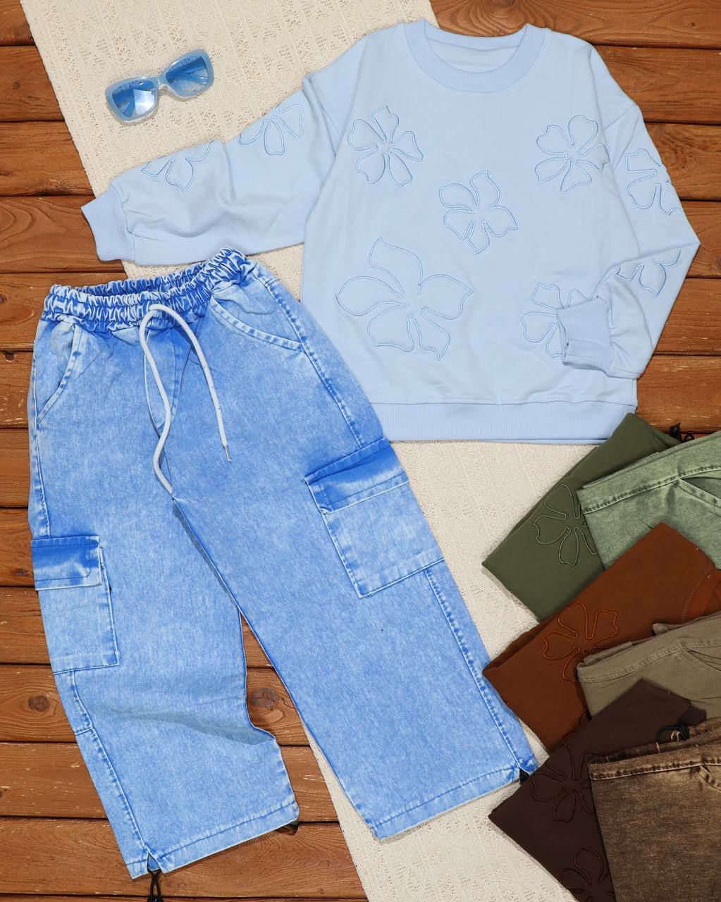 بلوز با شلوار کتان گلدوزی خرس